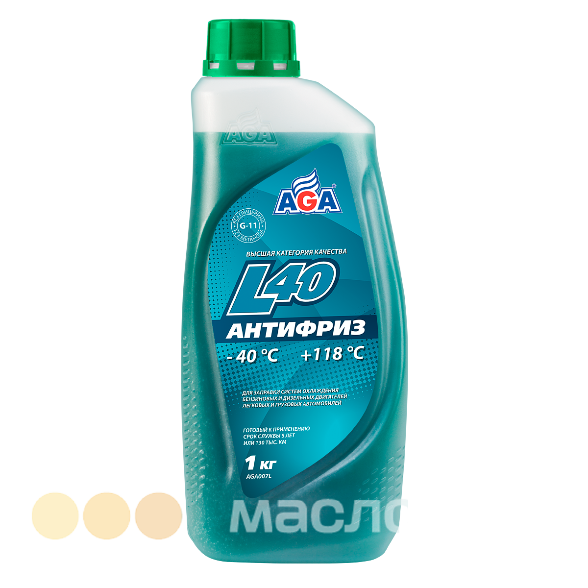 Антифриз AGA-L40, готовый к применению. Обеспечивает Эффективную работу системы охлаждения в диапазоне от -40 до +118 °С (под давлением) без смены антифриза до 5 лет или 130 тыс. км пробега. Высокую защиту головки и блока цилиндров от коррозии и кавитации. Превосходную защиту резиносодержащих элементов от растрескивания.