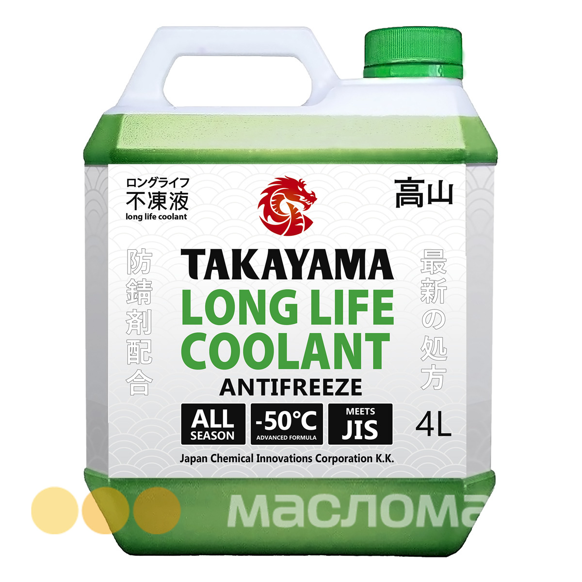 Лобридная жидкость охлаждающая низкозамерзающая «TAKAYAMA LONG LIFE COOLANT GREEN -50» на основе высокоочищенного этиленгликоля и специального пакета присадок, состоящего в том числе из ингибиторов коррозии на основе органических кислот и фосфатов (P-OAT — Phosphated - Organic Acid Technology). Не содержит в составе силикатов, нитратов, боратов и аминов. Температура застывания до -50 °C. Температура кипения 111 °С.