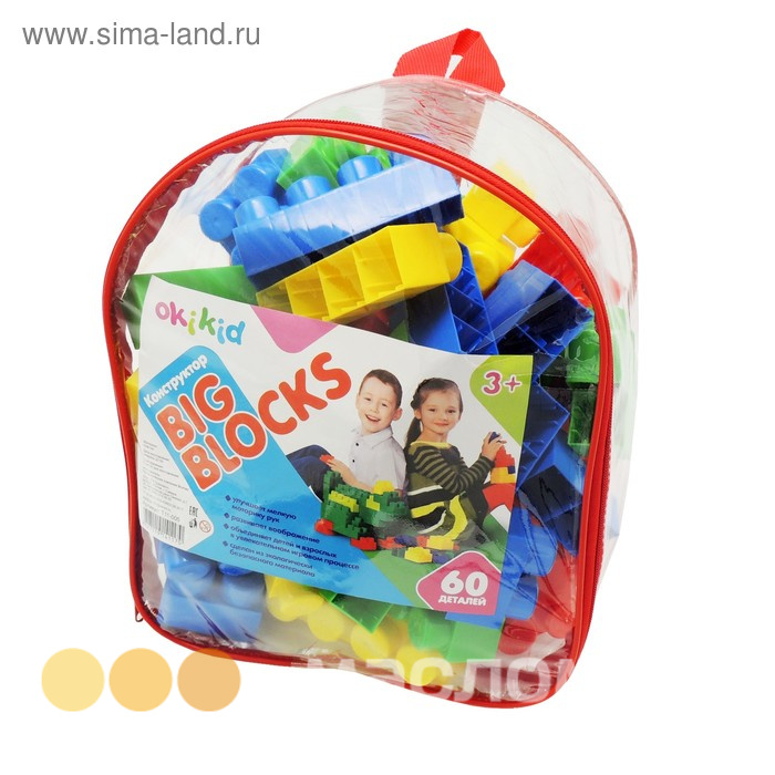 Конструктор платмассовый 60 деталей , в пакете-сумке