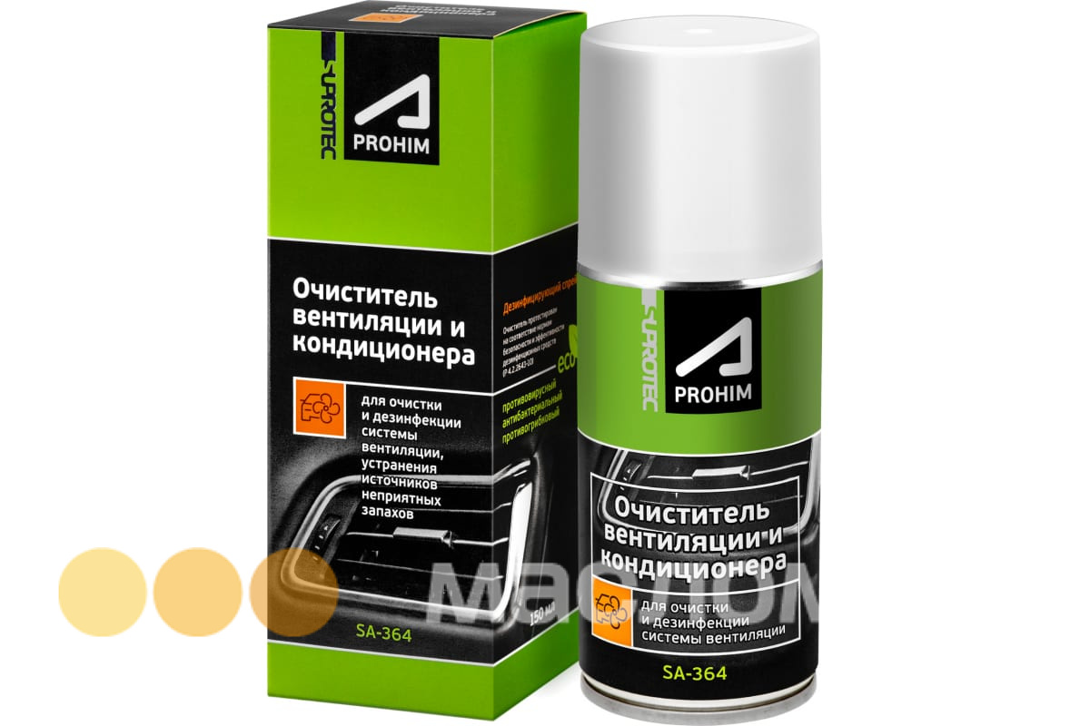 Очиститель кондиционера уничтожает подавляющее большинство видов бактерий и вирусов (среди них вирусы гриппа, гриппа H1N1, гриппа H5N1). После обработки салона действующие компоненты состава остаются на воздушном фильтре салона и уничтожают вирусы ГРИППА и других заболеваний в течение месяца;