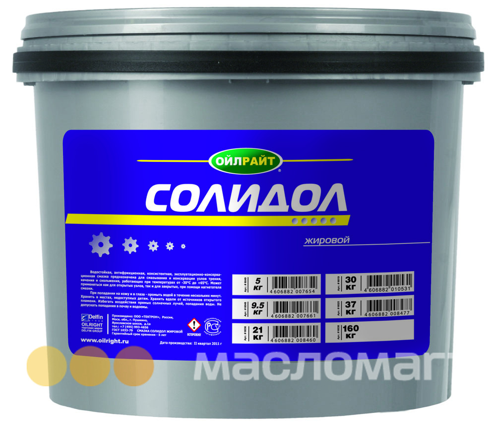 Солидол жировой. Водостойкая консистентная эксплуатационно-консервационная смазка. Температурный интервал применения: от -30°C до +65°C.